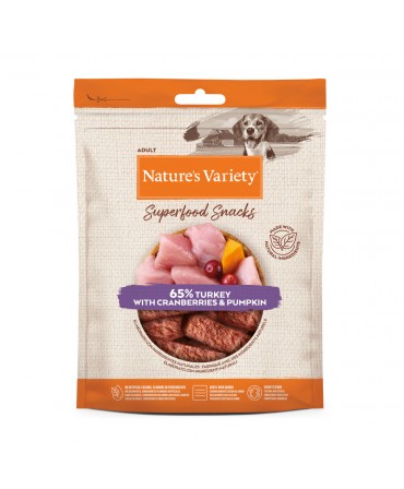 Barrinhas cuidadosamente preparadas no forno com ingredientes naturais e superalimentos saudáveis, para um alimento complementar baixo em calorias e com um sabor intenso. Com Peru, Arandos e Abóbora.