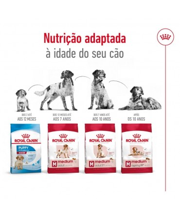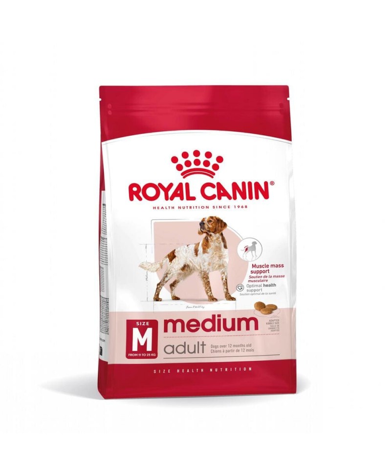O ROYAL CANIN® Medium Adult é um alimento nutricionalmente completo e equilibrado especialmente desenvolvido para satisfazer as necessidades específicas do seu cão de raça média e apoiá-lo ao longo da sua vida adulta. Este alimento destina-se aos cães de raças médias que pesam entre 11 e 25 kg e que têm mais de 12 meses.