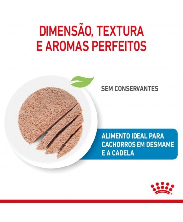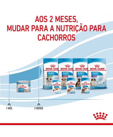 O ROYAL CANIN® Starter Mousse Mother & Babydog é especialmente formulado para satisfazer as necessidades nutricionais de cadelas gestantes ou lactantes e cachorros em período de desmame até à idade de 2 meses.