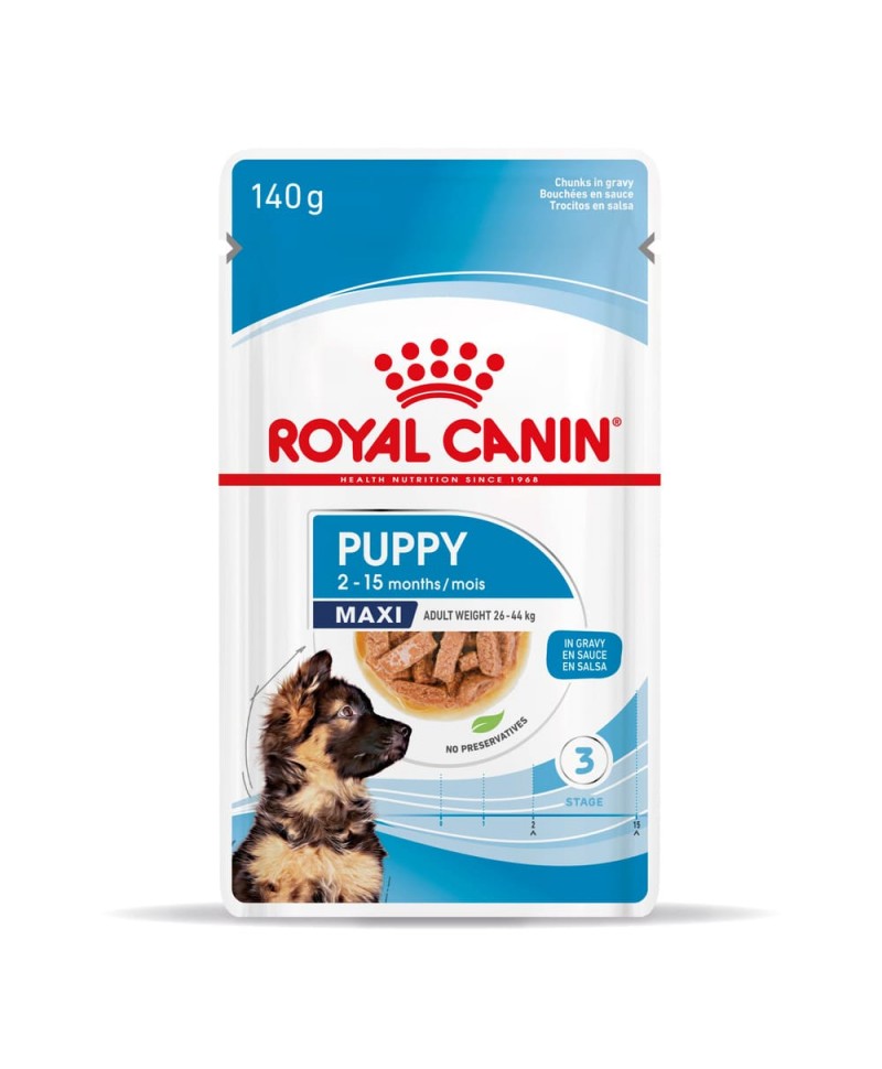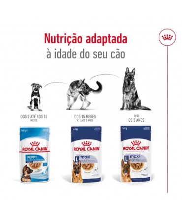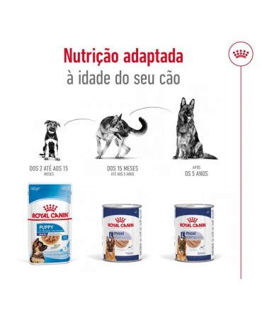 O ROYAL CANIN® Maxi Puppy em molho é especialmente formulado para apoiar as necessidades nutricionais dos cachorros de raça grande. Esta fórmula é adequada para cachorros de 2 a 15 meses de idade que devem atingir um peso adulto de 26-44 kg.