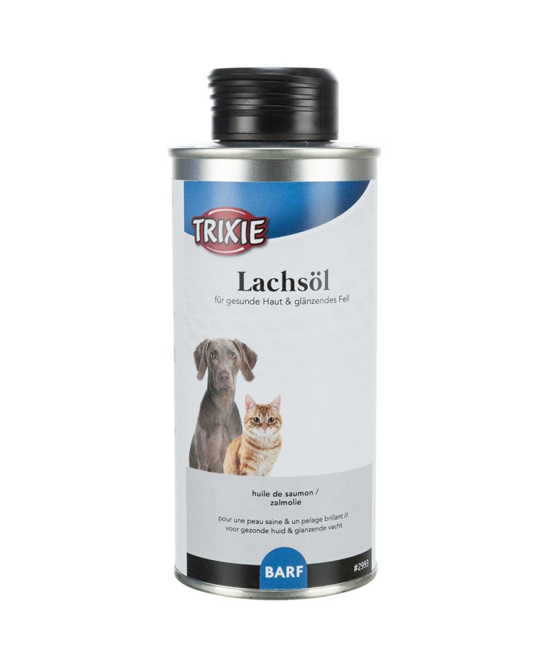 Complemento / suplemento para cães e gatos, com óleo de salmão.