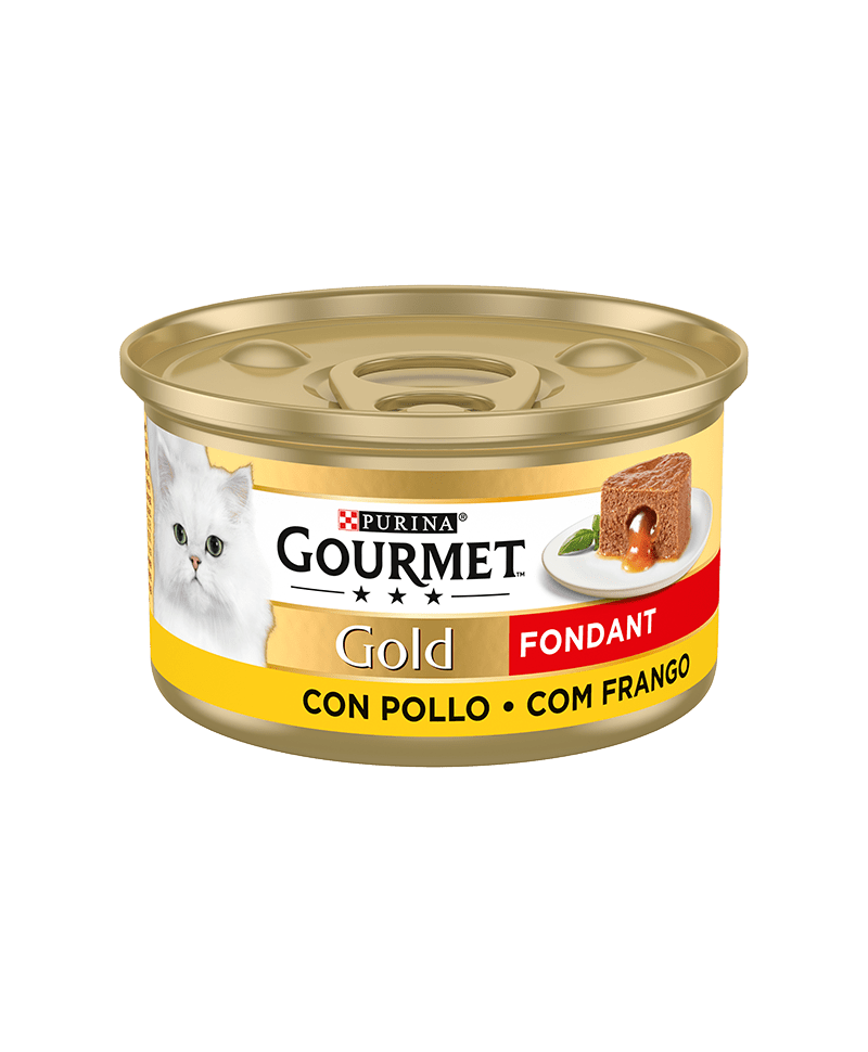 Adora deliciar o seu gato com a suave e tenra textura de uma mousse. Para tornar a sua refeição ainda mais especial, Gourmet criou Gourmet Gold Fondant: uma mousse suave e irresistível com vaca, frango, salmão e outros requintados sabores, com um supreendente recheio derretido no interior. O seu gato começará por experimentar uma suave e delicada mousse e depois irá descobrir um inesperado recheio, com um molho suculento que o irá deliciar.