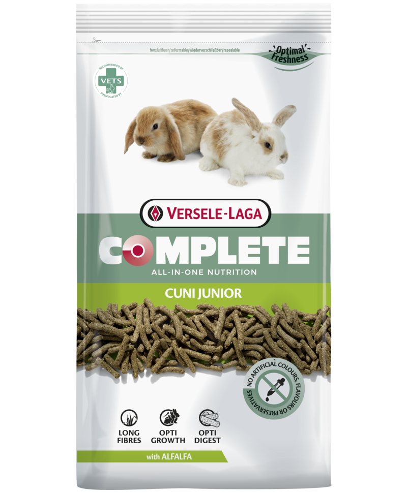 Versele-Laga Complete Cuni Júnior é uma nutrição sem preocupações. Os saborosos pellets tudo-em-um evitam comportamentos alimentares seletivos. Desta forma, o seu coelho jovem obtém todos os nutrientes essenciais e mantém-se perfeitamente saudável. Os alimentos com fibras longas têm um teor mais elevado de cálcio, proteínas e vitaminas - que são todos "os blocos de construção" para um crescimento ótimo. Versele-Laga Complete Cuni Junior é desenvolvido por veterinários, com base em conhecimentos científicos avançados.