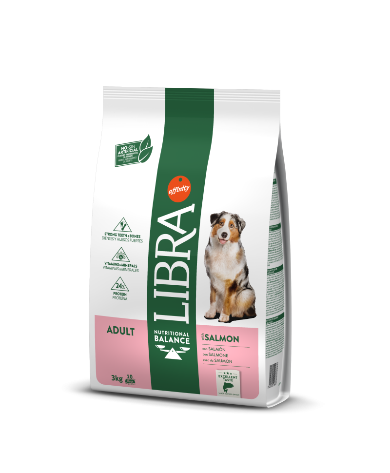 Alimento completo e equilibrado para cães adultos. Com salmão e arroz.