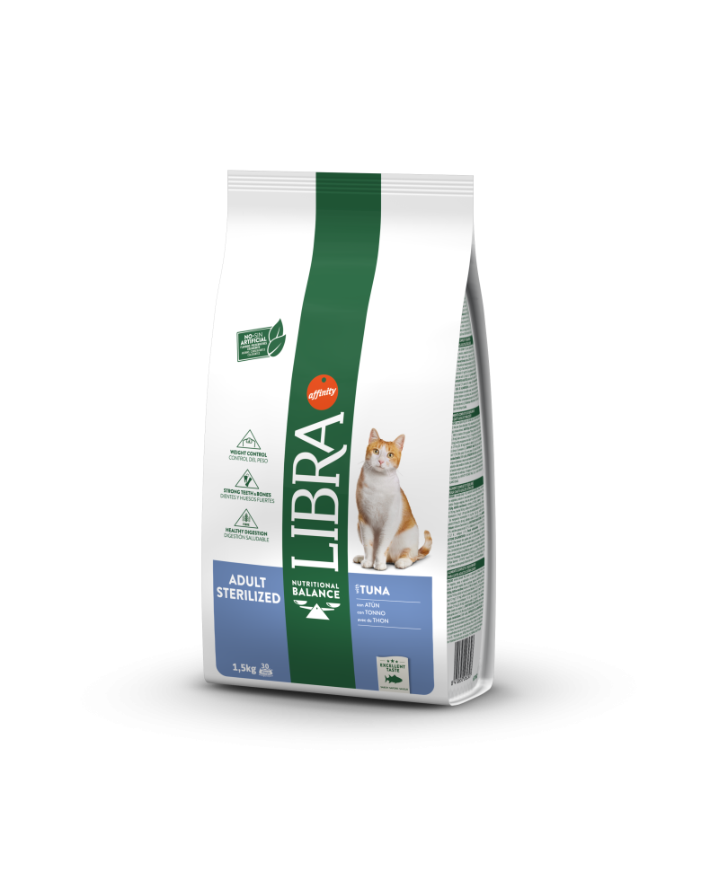 Alimento completo especialmente formulado para gatos esterilizados. Com atum e arroz.