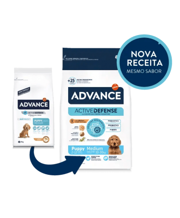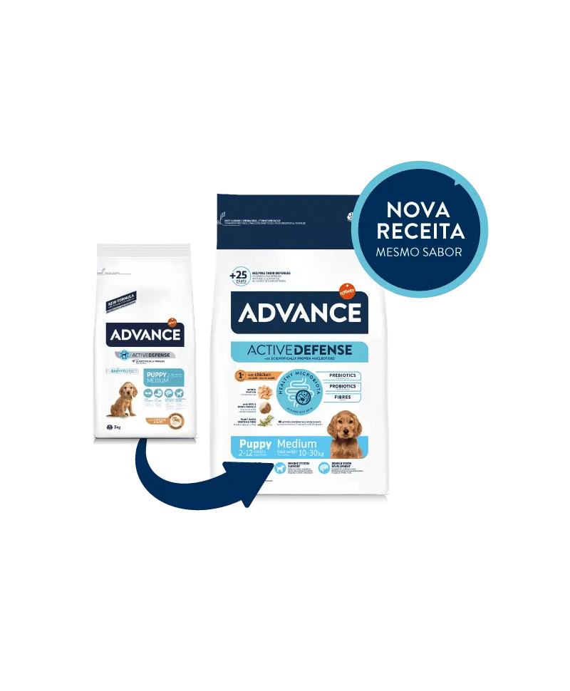 Na Advance, elaboramos as nossas receitas com ingredientes de primeira qualidade para garantir uma boa nutrição. A nossa receita Puppy Medium é elaborada com frango como primeiro ingrediente, incorporado na receita sem processamento prévio e cozido no seu próprio suco. O frango é uma excelente fonte de proteína e aminoácidos essenciais para a manutenção dos tecidos e uma boa musculatura.