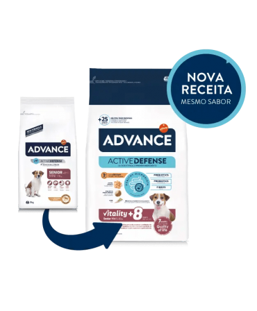 Advance Vitality Senior Mini +8 ajuda a manter a vitalidade dos cães de porte pequeno com mais de 8 anos. Proporciona 7 benefícios-chave para a idade, que ajudam a manter a sua qualidade de vida. É um alimento fácil de digerir e o croquete está adaptado ao tamanho dos cães de porte pequeno.