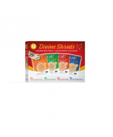 Alimento húmido para gatos. Gama Divine Shreds. Pack com base de Frango e vários sabores.
