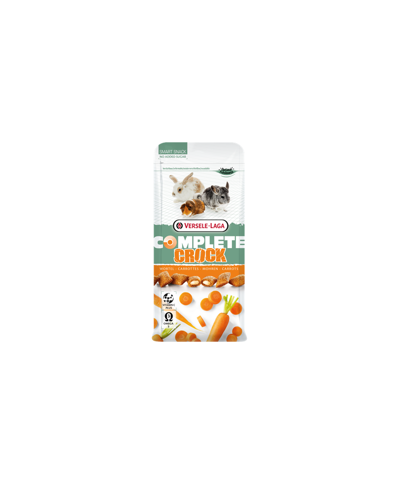 Versele-Laga Complete Crock Carrot é um petisco saboroso e saudável para coelhos e vários roedores. A casca estaladiça estimula o instinto de roer e o suave recheio de cenoura é enriquecido com vitaminas e ómega 3. Os Crocks de fácil digestão não contêm quaisquer açúcares adicionados e são, portanto, o snack ideal para o seu animal.