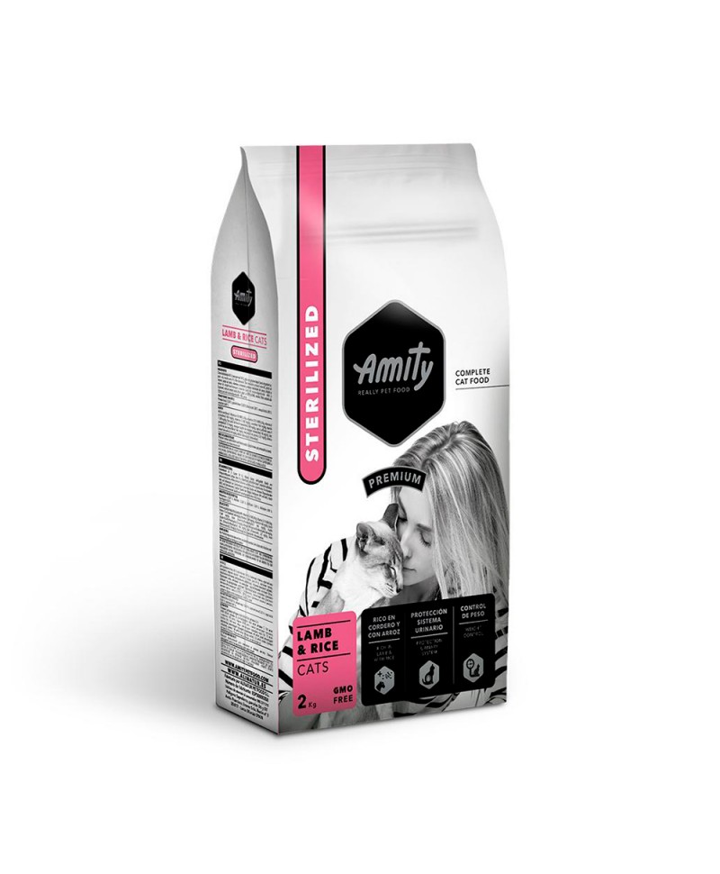 Alimento completo para gatos, adequado a gatos adultos esterilizados. Sabor a Cordeiro com Arroz.