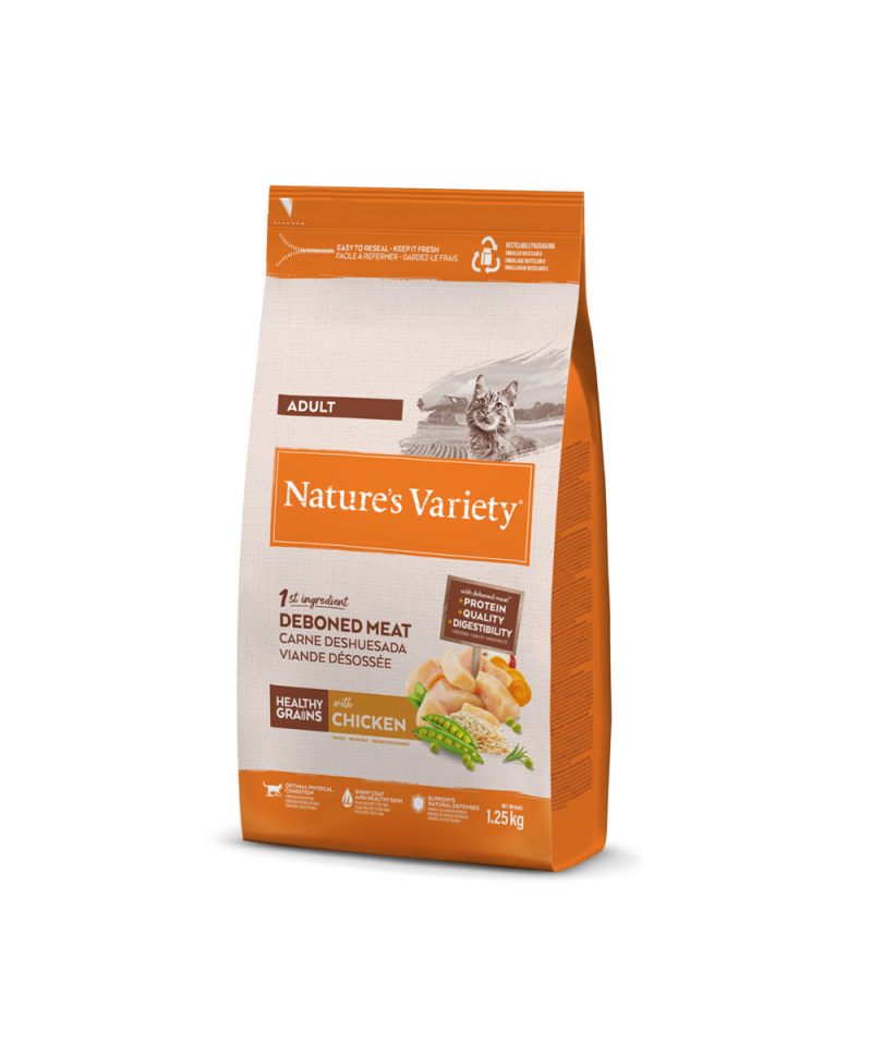 Elaborado com carne de frango desossada como ingrediente principal. Complementado com frutas, vegetais cuidadosamente selecionados e cereais saudávels.