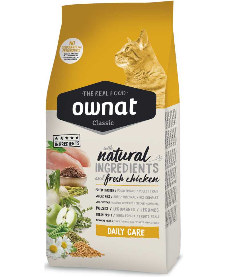 A característica que torna a gama Classic uma opção distinta e única no segmento premium é a incorporação de autêntica carne fresca e de ingredientes naturais nas suas receitas. Algo até agora reservado apenas a gamas superiores de preços mais elevados e que a Ownat quer tornar mais acessível, para que possa dar sempre a melhor alimentação ao seu animal.