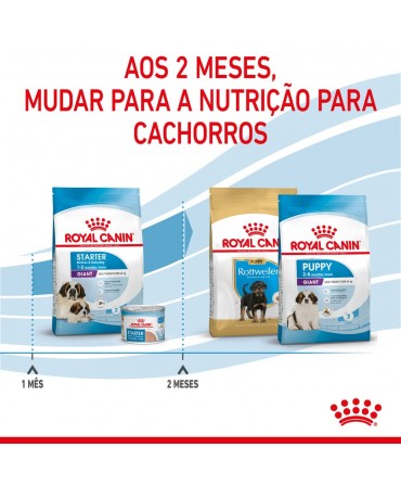 O ROYAL CANIN® Giant Starter Mother & Babydog é especialmente formulado para apoiar as necessidades nutricionais das mães lactantes e dos seus cachorros. Esta fórmula é adequada para cães adultos de tamanho grande que pesam mais de 45 kg, e para o período desmame de cachorros até aos 2 meses de idade.