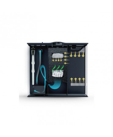 Todo o equipamento técnico do aquário fica oculto e fora da vista, na parte posterior do aquário. Também tem espaço suficiente para colocar um termostato de modo que fica oculto também.