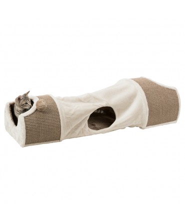 Se procura um elemento complementar para o seu gato, que lhe proporcione diversão interminável e lhe permita alguma privacidade, esta estrutura pode ser a solução. Este túnel para arranhar da Trixie possui um total de três nichos, sendo dois deles mais pequenos e nas extremidades, revestidos em sisal na parte exterior, para que o gato possa também ter um local apropriado para afiar as suas garras. Todavia, é ainda composto por outro nicho completamente forrado em pelúcia, constituindo a parte central do túnel. Para cativar o animal, este produto tem também alguns brinquedos, que serão certamente os melhores aliados do seu gato.