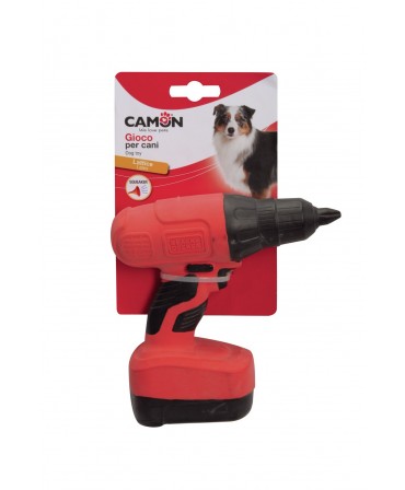 Brinquedo em forma de berbequim, com barulho, para cães.