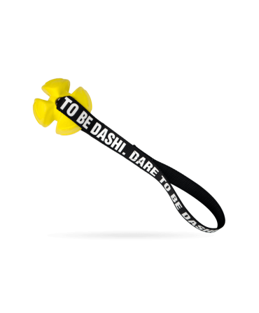 A bola amarela é feita de TPR não-tóxico com uma resistente fita de poliéster, oferecendo um lançamento confortável e diversão constante!