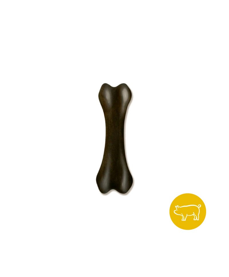 Brinquedo em forma de osso para satisfação do instinto natural de mastigação do cão com forte aroma a Bacon. Apropriado para cachorros.
