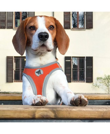 É equipado com duplo fecho para máxima segurança: o Velcro e as faixas nas costas permitem ajustar a circunferência do peitoral ao corpo do patudo. O fecho no topo garante o peitoral fixo.