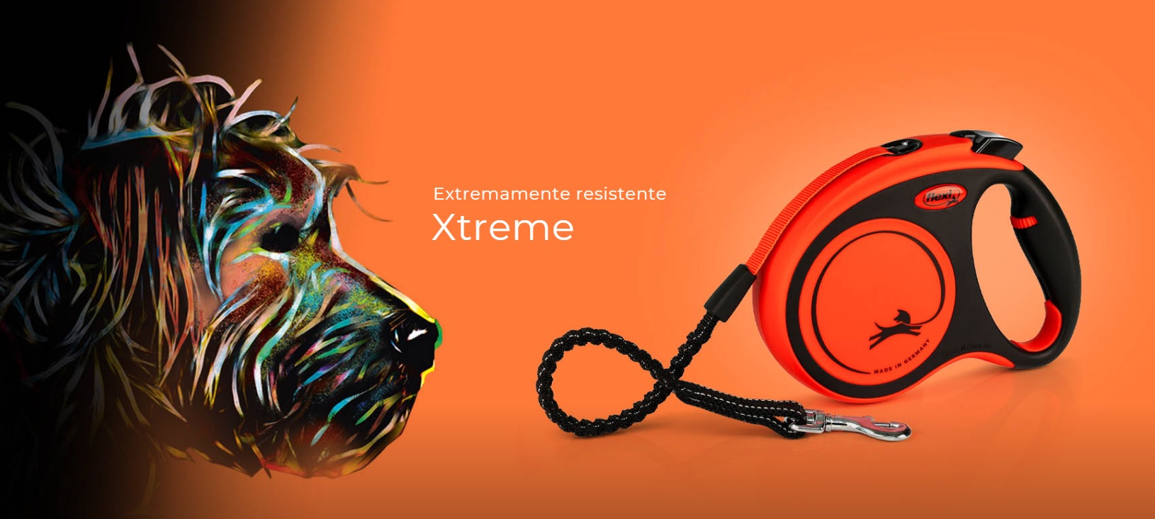 Trela extensível para cães. Tema Xtreme