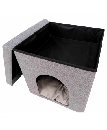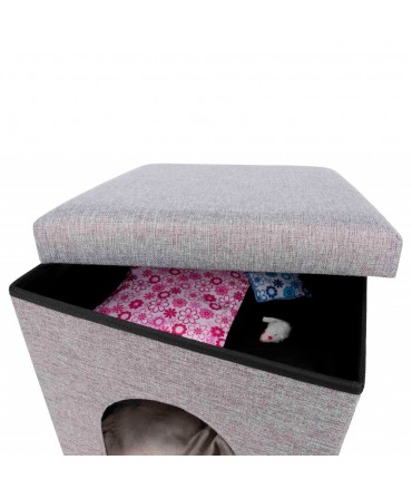 Nicho em cubo, com armazenamento no interior, confortável para os patudos.