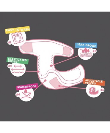 O tecido exterior impermeável evita que os líquidos escapem, enquanto a camada interior absorvente mantém o cão seco. Não é necessário colocar um absorvente interno. Excelente ajuste graças ao fecho de velcro ajustável e inserções elásticas. Lavável na máquina.