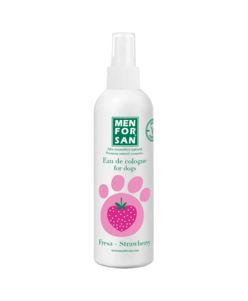 Eau de cologne para cães com fragrância STRAWBERRY, especialmente criada para proporcionar um cheiro fresco após o banho e um efeito desodorizante intenso, muito agradável, respeitando a pele e as propriedades olfativas do animal.