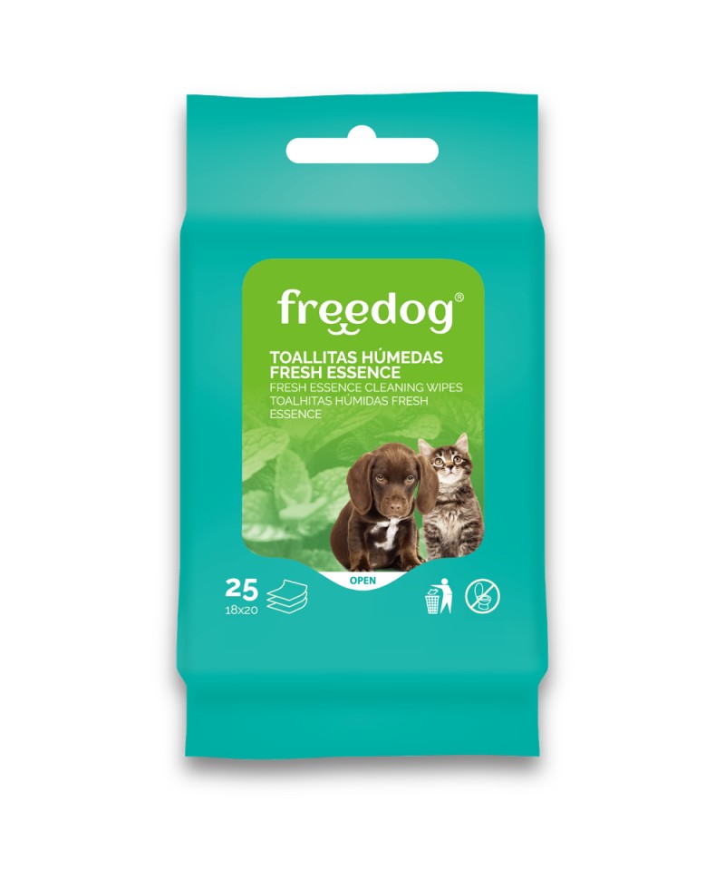 As toalhitas húmidas Freedog são perfeitas para ter sempre à mão na higiene do seu animal de estimação, eliminando os maus odores e limpando a fundo o pelo e as patas após o passeio diário. As toalhitas Freedog são também recomendáveis na higiene e limpeza da cara, orelhas e zona anal.
