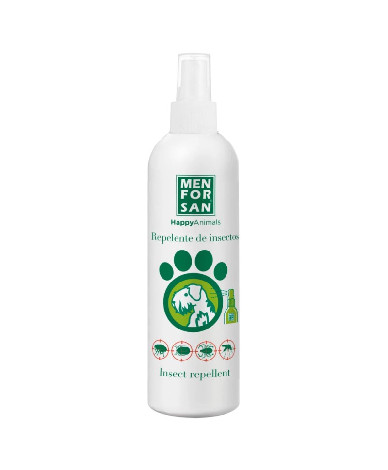 Spray repelente de insetos para cães com repelentes naturais, muito eficaz contra todos os tipos de insetos voadores (moscas, mosquitos, vespas). Também protege contra pulgas, carraças, percevejos e ácaros.