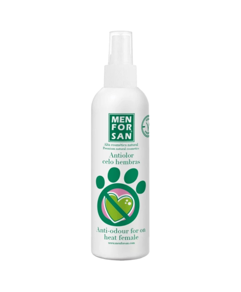 Produto natural neutro, sem álcool e sem fragrância, para atenuar o odor das fêmeas durante o período de cio e reduzir o assédio indesejado por parte dos cães durante os passeios diários.