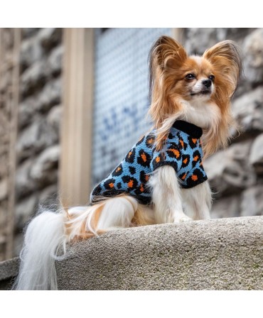 A camisola de malha Maglioncino Cheetah Spot para cães é a peça ideal para os dias mais frescos e ventilados, feito com um tecido quente e confortável, decorado com maravilhosos bordados que criam um efeito animal e adoráveis detalhes em malha nas mangas.