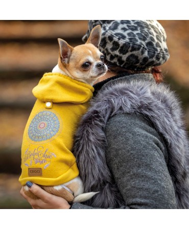 Sweatshirt com capuz para cães. Abertura na zona da barriga para vestir facilmente.