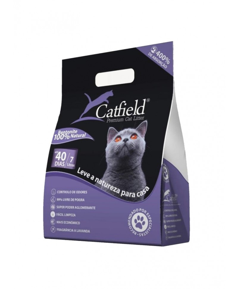 Super absorvente: quando em contacto com líquidos, Catfield Super Premium Cat Litter atua imediatamente formando agregados que não deixam repassar uma única gota de urina. Esta performance na formação de agregados facilita a limpeza do caixote da areia.