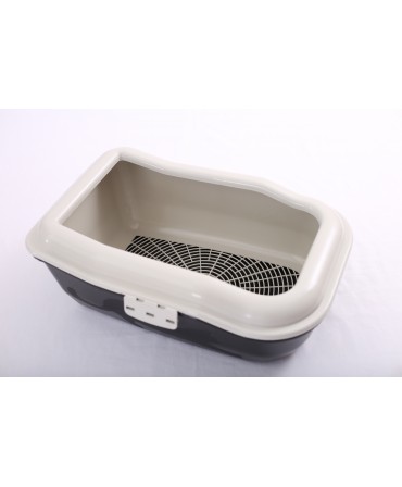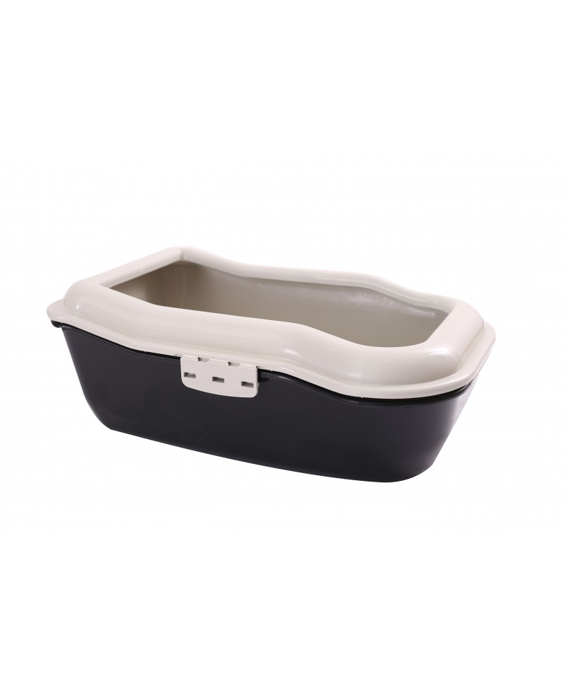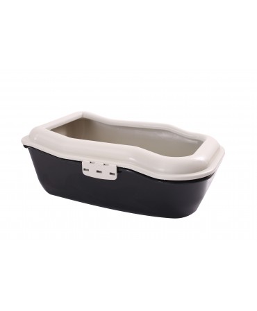 Possui bordas arredondadas para impedir que os gatos se magoem ao entrar ou sair da caixa e para que não caia areia do recipiente.