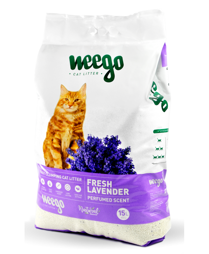 Weego® Fresh Lavender Cat Litter é uma areia de gato de alta qualidade feita a partir de bentonite natural sem nenhum outro mineral adicionado, não tóxica e não cria pó (ideal para gatos alérgicos). Desta forma não irrita ou infeta qualquer ferida que o seu gato possa ter. Não se cola às patas do seu gato e portanto não deverá encontrar vestígios de areia pelo chão. A fórmula Weego® Fresh Lavander tem um aroma fresco a Lavanda.