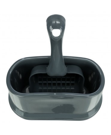 Este suporte fornece uma solução higiénica e conveniente para armazenar pás de litter, escondendo a sua sujidade, economizando o espaço e mantendo a alça de pé na posição vertical pronta para uso.
