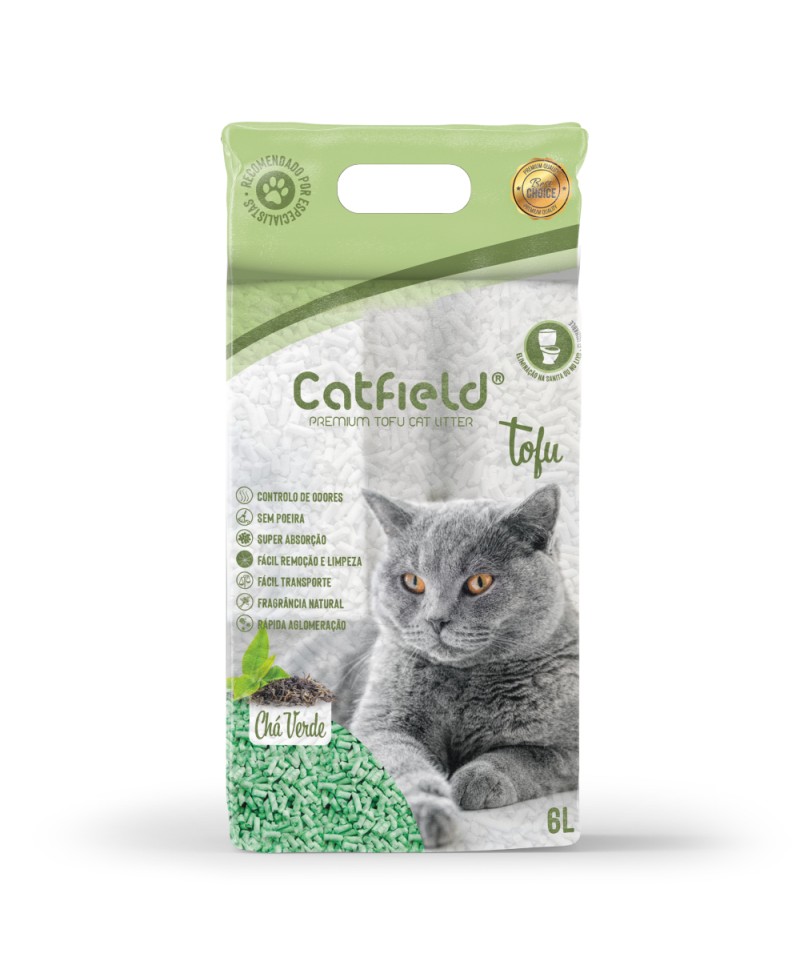 Catfield® Premium Cat Litter Tofu, é um absorvente para higiene de gatos, inteiramente de origem vegetal à base de soja, 100% natural, biodegradável e isento de componentes químicos e seguro mesmo se acidentalmente ingerido. As fibras vegetais de tofu retêm os líquidos criando uma bola compacta, facilmente removível e eliminável na sanita, no lixo doméstico ou utilizada como fertilizante no jardim. Tem um poder de absorção muito grande e retém os maus odores. O tofu é leve e suave nas patas, 100% seguro e não tóxico para humanos ou animais, não risca o chão nem solta poeiras.