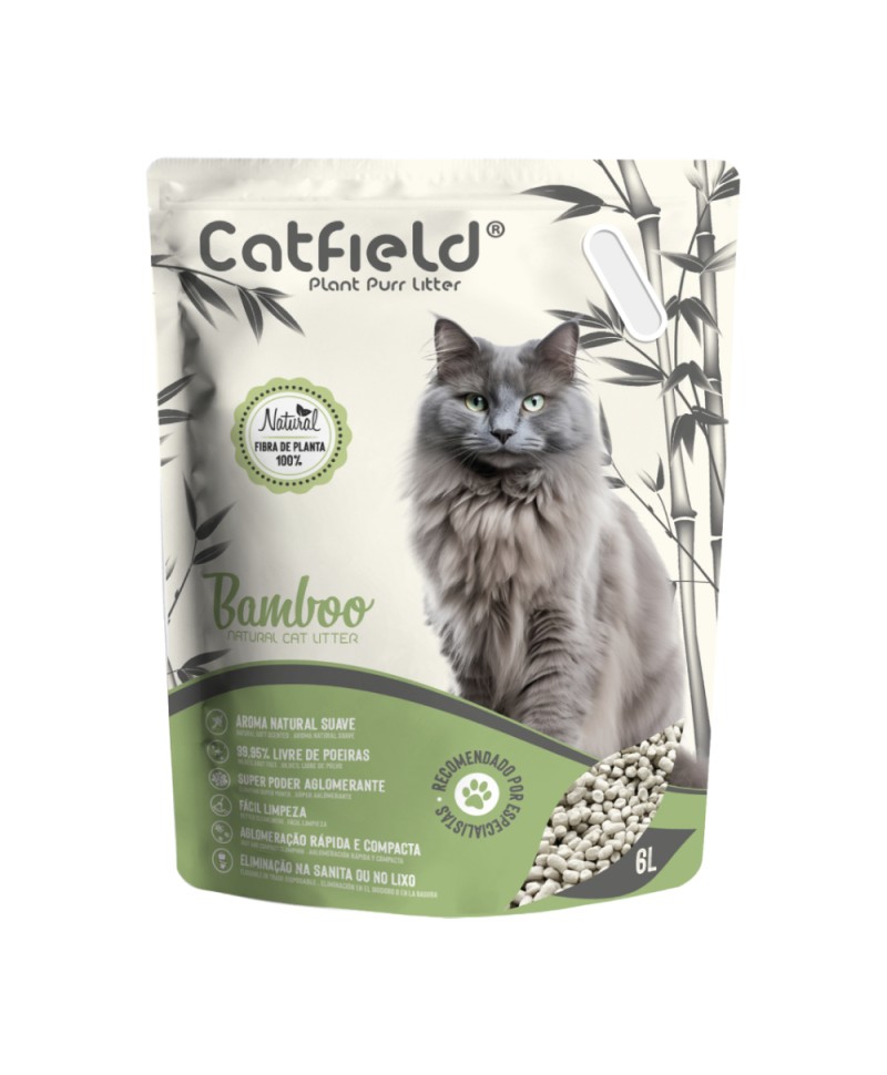Catfield® Plant Pure Litter é natural, eficaz e amiga do ambiente. Produzida a partir de fibras vegetais como bambu e bagaço, este é um produto 100% natural, biodegradável e seguro para o seu gato. É altamente absorvente, forma aglomerados firmes que neutralizam os odores e facilitam a limpeza diária. Praticamente sem poeiras (99,95%) e sem químicos, é suave para as patas dos gatos e não se cola ao pelo. Para além de ecológico, é muito fácil de usar. Pode descartar na sanita ou lixo orgânico.